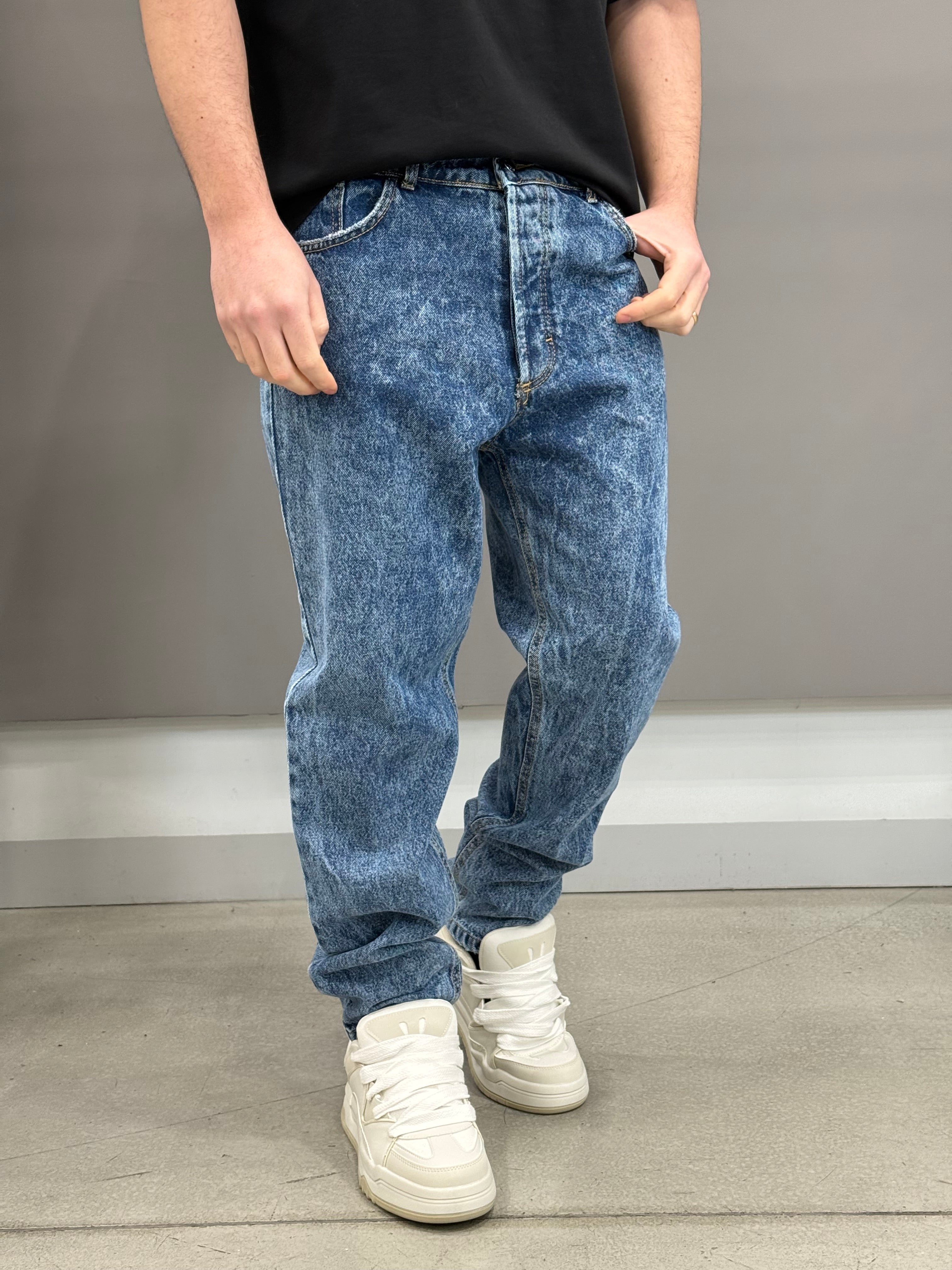 Descrizione: jeans baggy fit, mod 5 tasche , con micro abrasioni su tasche